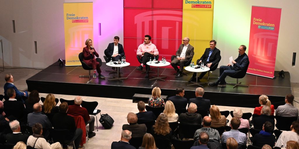 Wie sieht die Schule der Zukunft aus? Mit dieser Frage beschäftigt sich die Fraktion der Freien Demokraten im Hessischen Landtag im Rahmen eines Projekts sehr intensiv. Nach zahlreichen Gesprächen mit Bildungsexperten und Schulbesuchen ist Moritz Promny überzeugt: „In Zeiten von Künstlicher Intelligenz braucht die Welt keine Konformität, sondern Kreativität.“ Schulen dürften keine Orte der Standardisierung sein, sondern Räume der Fantasie und Entfaltung. Flexible Lernzeiten, alternative Lernorte und eine Kultur des Vertrauens seien entscheidend. „Wir brauchen Strukturen, die Halt geben – aber keine Fesseln sind“, postulierte der bildungspolitische Sprecher der FDP-Fraktion zu Beginn der Veranstaltung Bildung der Zukunft, zu der seine Fraktion Anfang November nach Wiesbaden eingeladen hatte.