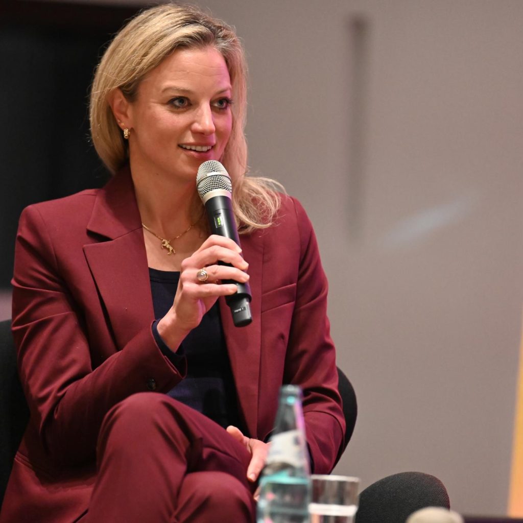 An der Wiesbadener Wilhelm-Heinrich-von-Riehl-Schule kann Swantje Dietrich auf „ihre“ Lehrkräfte setzen, um individuelles Lernen zu ermöglichen. Die Schulleiterin in sozial herausfordernder Lage berichtete eindrucksvoll von ihrem Kollegium, das mit Herzblut und Empathie oft weit über das geforderte Maß hinausgehe: „Wir wollen, dass die Potenziale der Kinder gesehen werden – nicht ihre Defizite.“ Noten würden diesem Anspruch oft nicht gerecht, sagte die Schulleiterin, die auch in den sozialen Medien als „@schulleiterin.dietrich“ erfolgreich ist. Für sie ist klar: „Digitale Kompetenzen sind kein Extra, sondern Grundvoraussetzung für die Zukunft unserer Kinder.“